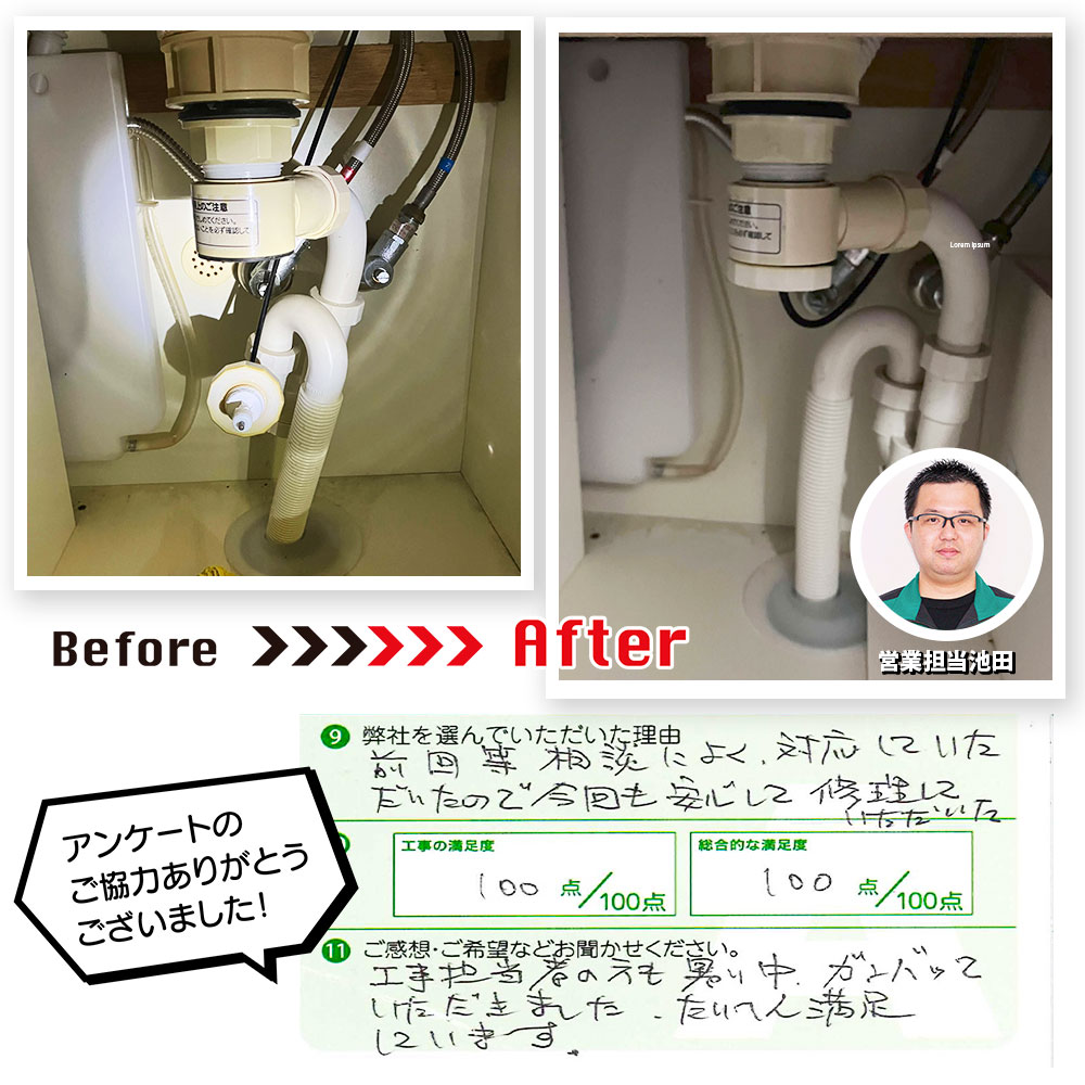 山口市の服部様邸で洗面台水漏れの修理を行いました