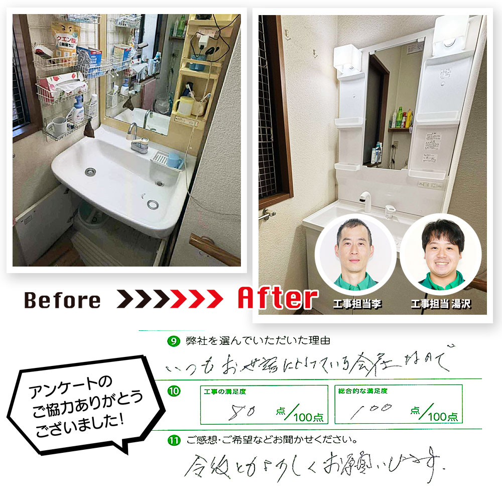 防府市の豊嶋誠様邸で洗面台の交換を行いました