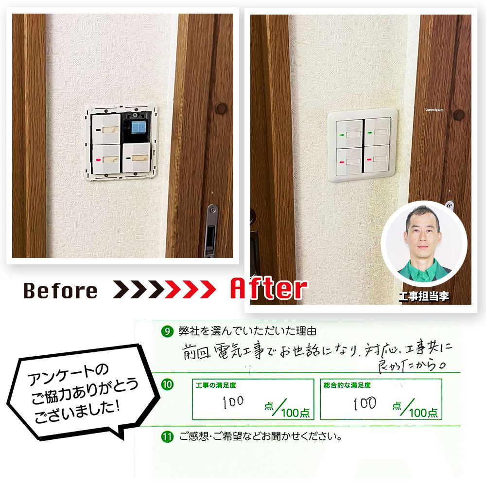 山口市のK様邸でスイッチの交換を行いました