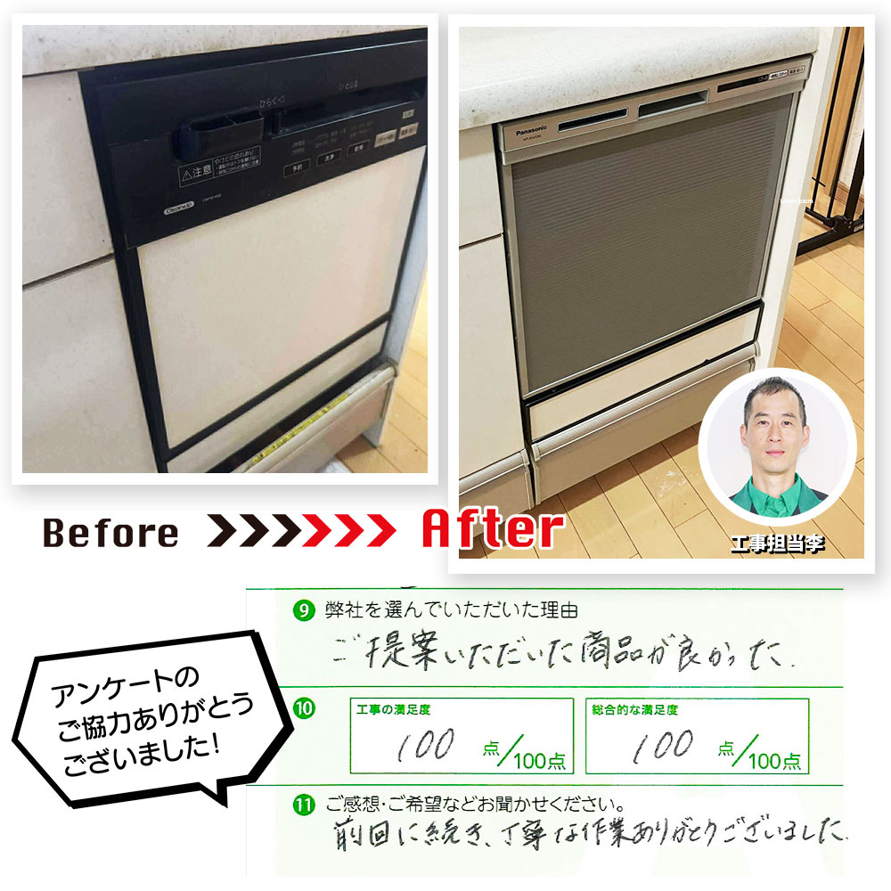 山口市のG様邸で食洗機の交換を行いました