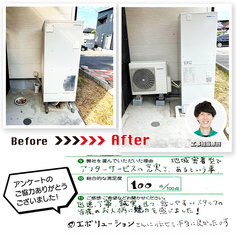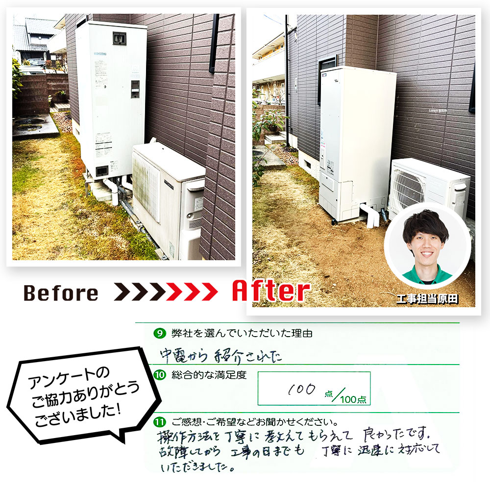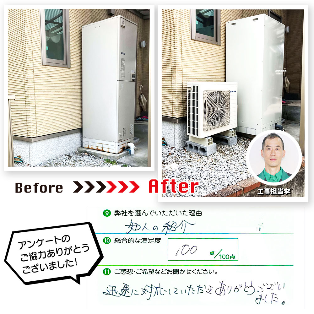 故障してから工事の日までも丁寧に迅速に対応していただきました」