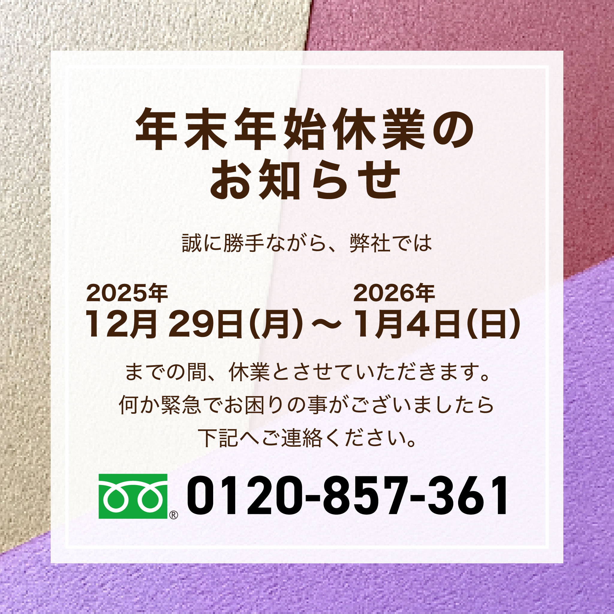 【 年末年始休業のお知らせ 】