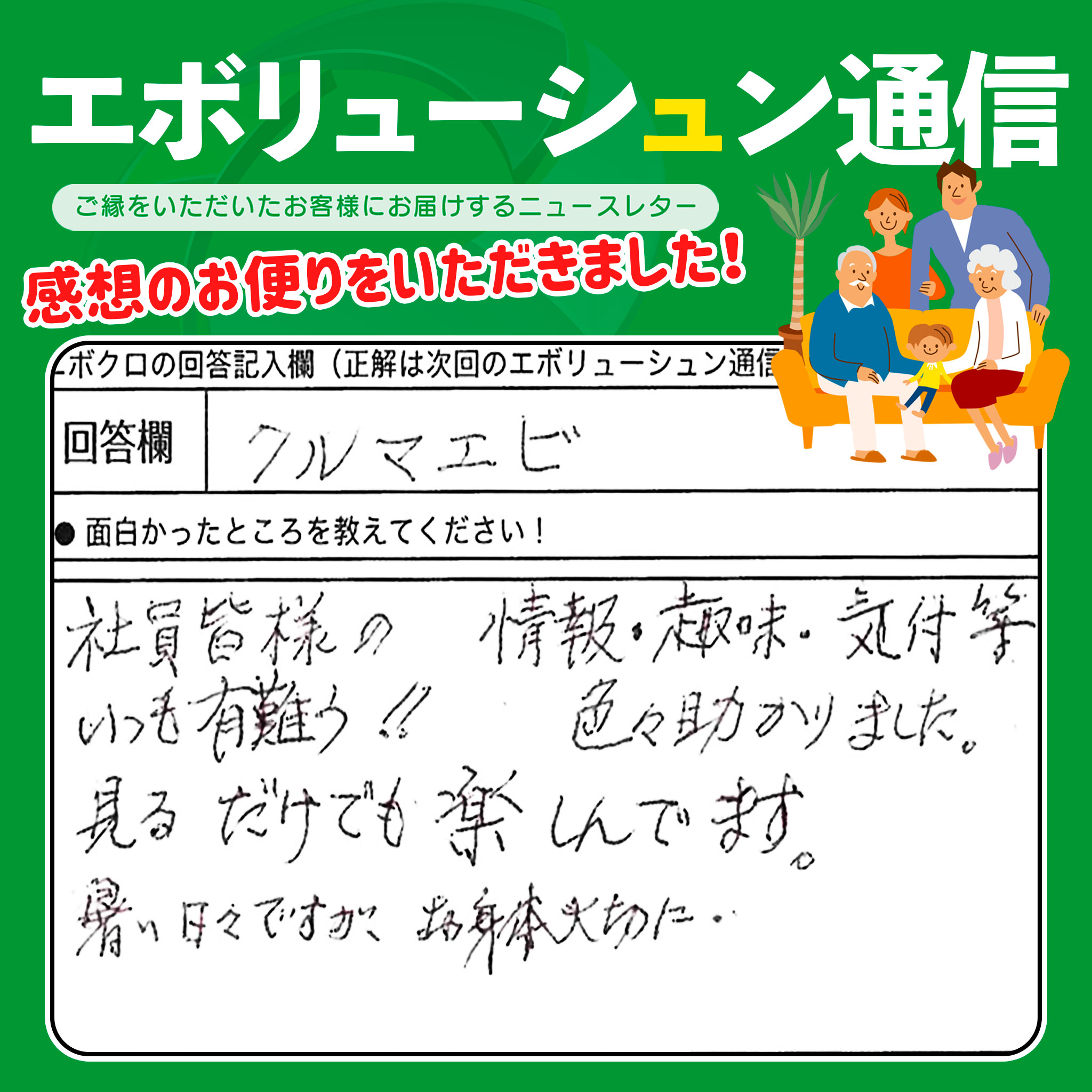 エボリューシュン通信の感想のお便りをいただきました。